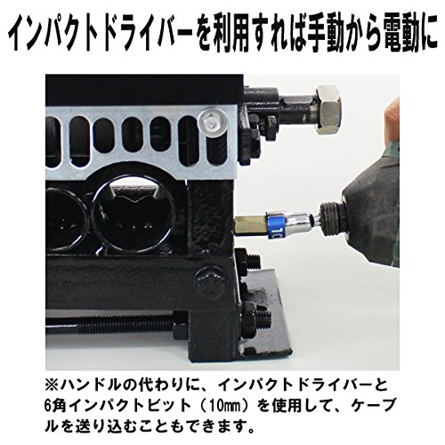 ●ハンドルの代わりに、インパクトドライバーと6角インパクトビット(10mm)を使用して、ケーブルを送り込むこともできます。