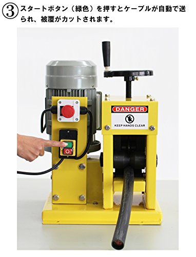 3:スタートボタン(緑色)を押すとケーブルが自動で送られ、被覆がカットされます。