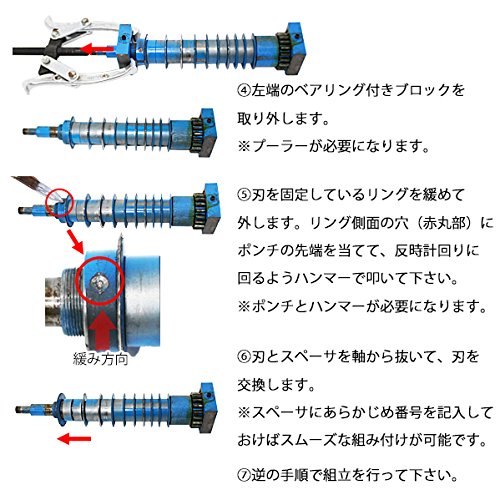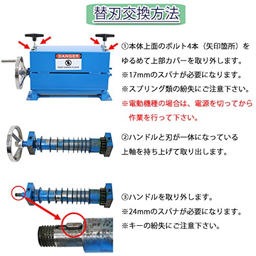 ●刃の交換には、17mmと24mmのスパナ、プーラー、ポンチ、ハンマー等の工具が必要となります。 お客様自身でご用意をお願い致します。