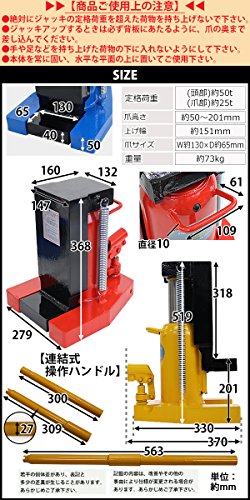 油圧式 爪付きジャッキ レッド 爪部約25t 頭部約50t 2台 セット 油圧ジャッキ 爪ジャッキ ボトルジャッキ 爪式 ジャッキ 手動 ジャッキアップ 爪付 爪つき つめ付き ツメ付き 工具 修理 メンテナンス 作業 jackmh25000r2setred (赤)