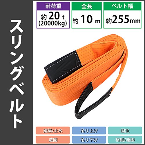 スリングベルト ベルトスリング 耐荷重約20t 約20000kg 全長約10m ベルト幅約255mm 荷揚げ 吊り上げ 吊り下げ 玉掛け ナイロンスリング ナイロンスリングベルト 吊りベルト 繊維ベルト 建築 土木 造園 固定 運搬 引っ張り 牽引 橙 オレンジ slbelt20t10m