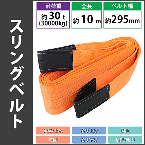 スリングベルト ベルトスリング 耐荷重約30t 約30000kg 全長約10m ベルト幅約295mm 荷揚げ 吊り上げ 吊り下げ 玉掛け ナイロンスリング ナイロンスリングベルト 吊りベルト 繊維ベルト 建築 土木 造園 固定 運搬 引っ張り 牽引 橙 オレンジ slbelt30t10m