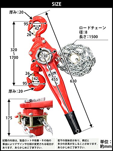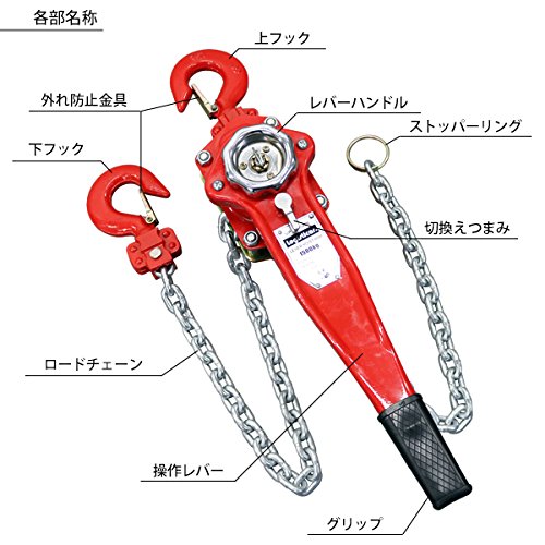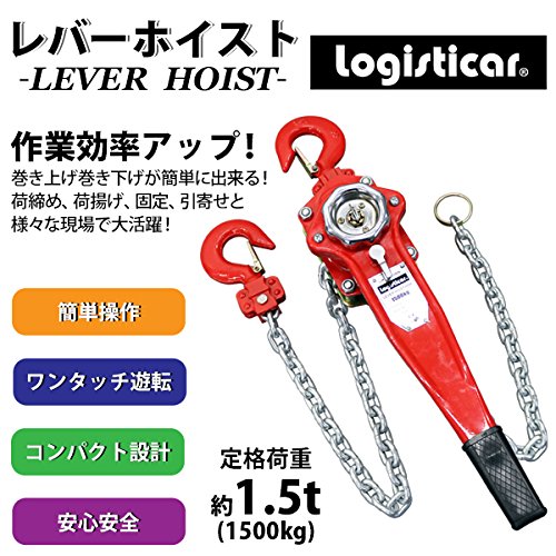 レバーホイスト チェーンブロック 定格荷重約1.5t 約1500kg 標準揚程約1.5m 荷締め 荷揚げ 引寄せ 固定 建築 運搬 土木 災害復旧 アウトドア DIY 吊り 引っ張り 荷締機 牽引 チェーン式 レバー式ホイスト チェーンホイスト 手動 ガッチャ 赤 レッド shhoist15t15m