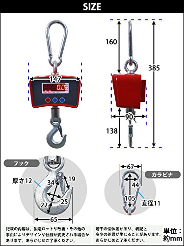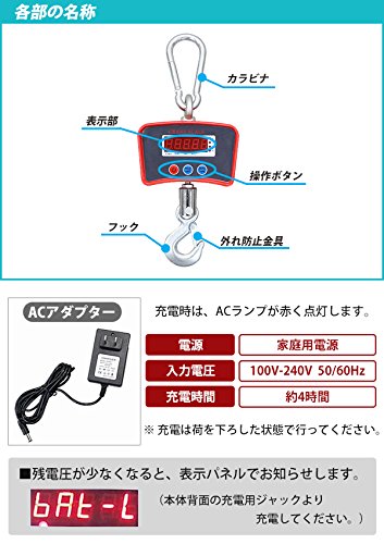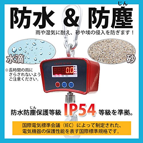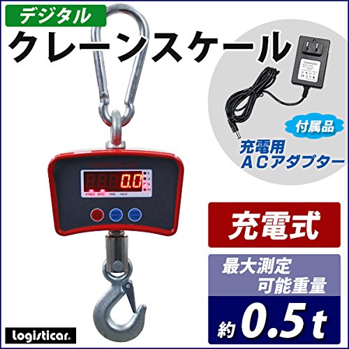 デジタルクレーンスケール 最大測定可能重量約0.5t 充電式 防水 防塵 精密 計量 吊りはかり 吊り秤 吊秤 電子秤 吊り下げ クレーン フック 玉掛け 吊り上げ 重機 コンパクト 天秤 天びん はかり 500kg 赤 レッド cscale500red