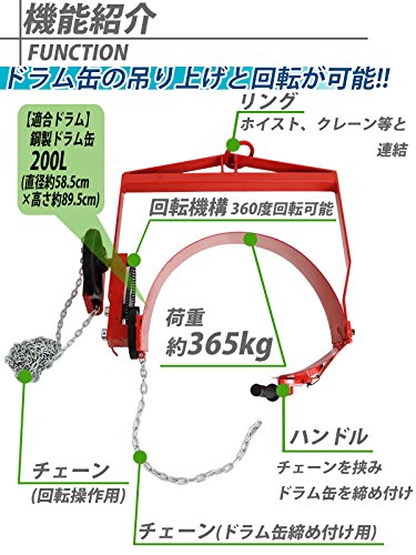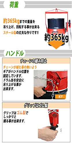 ドラム缶回転吊り具 ギア付 荷重365kg スチール ギヤ付 ギア式回転 ドラム缶回転吊り具 ドラム缶反転吊り具 吊具 吊り具 回転 反転 ドラム反転ハンガー ドラム缶 運搬 ハンガー ドラムリフター クレーン ホイスト リフト リフター drumtongg800