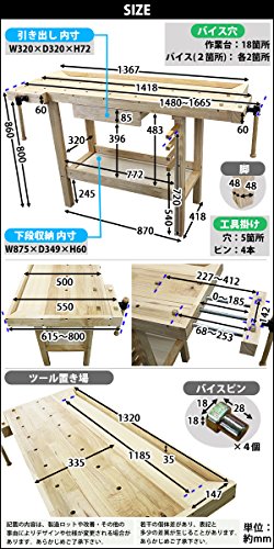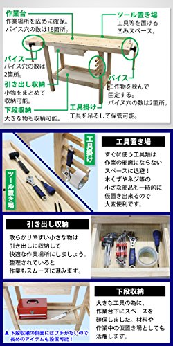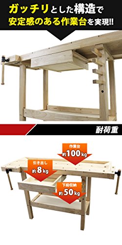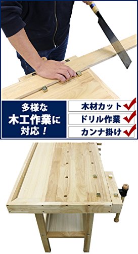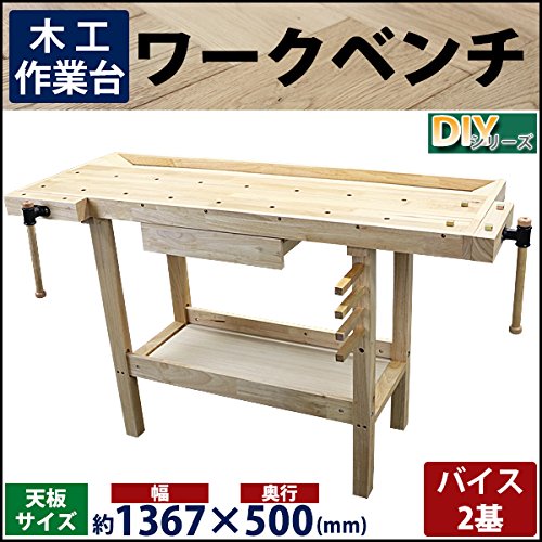 ワークベンチ 木工作業台 天板幅約1367mm 天板奥行約500mm 耐荷重約100kg DIY バイス2基 木製作業台 工作台 作業台 日曜大工 ガレージ 引き出し 収納 棚 万能作業台 工作作業台 バイス 万力 ワークテーブル テーブル デスク 机 workbenchs02