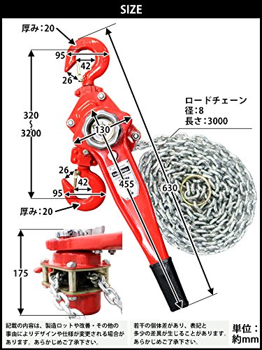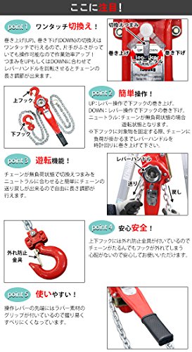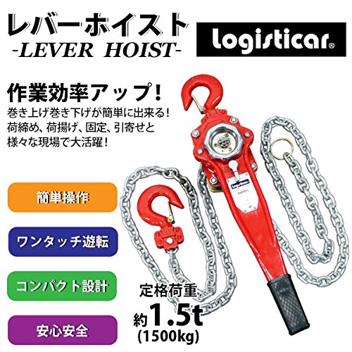 レバーホイスト チェーンブロック 定格荷重約1.5t 約1500kg 標準揚程約3m 荷締め 荷揚げ 引寄せ 固定 建築 運搬 土木 災害復旧 アウトドア DIY 吊り 引っ張り 荷締機 牽引 チェーン式 レバー式ホイスト チェーンホイスト 手動 ガッチャ 赤 レッド shhoist15t3m
