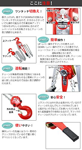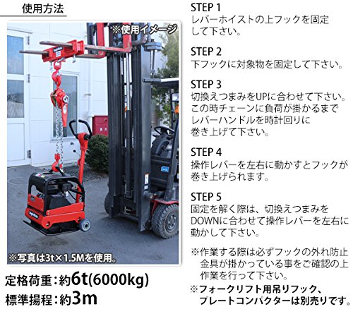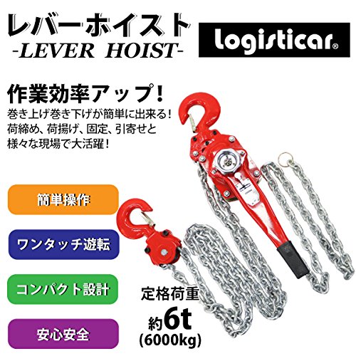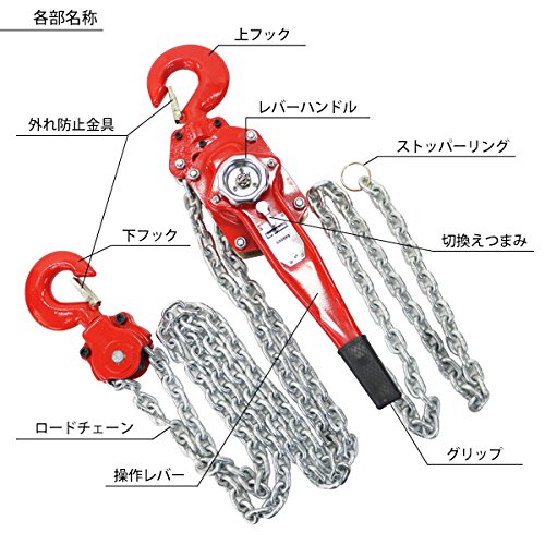 レバーホイスト チェーンブロック 定格荷重約6t 約6000kg 標準揚程約3m 荷締め 荷揚げ 引寄せ 固定 建築 運搬 土木 災害復旧 アウトドア DIY 吊り 引っ張り 荷締機 牽引 チェーン式 レバー式ホイスト チェーンホイスト 手動 ガッチャ 赤 レッド shhoist6t3m