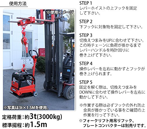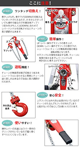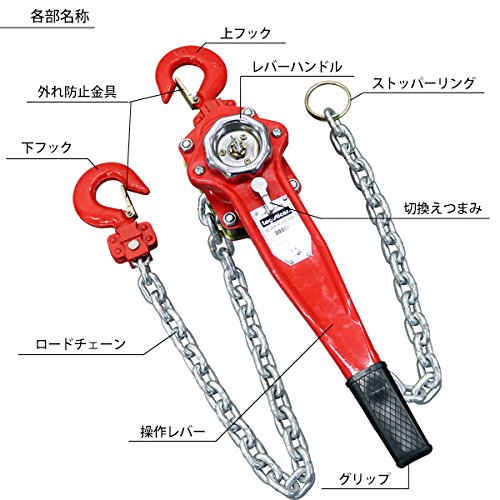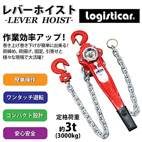 レバーホイスト チェーンブロック 定格荷重約3t 約3000kg 標準揚程約1.5m 荷締め 荷揚げ 引寄せ 固定 建築 運搬 土木 災害復旧 アウトドア DIY 吊り 引っ張り 荷締機 牽引 チェーン式 レバー式ホイスト チェーンホイスト 手動 ガッチャ 赤 レッド shhoist3t15m