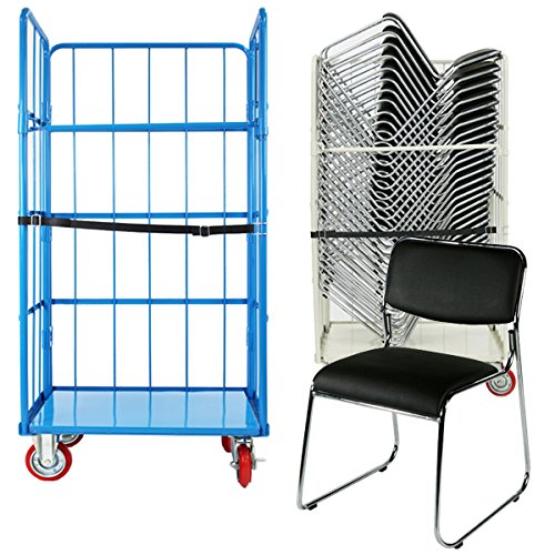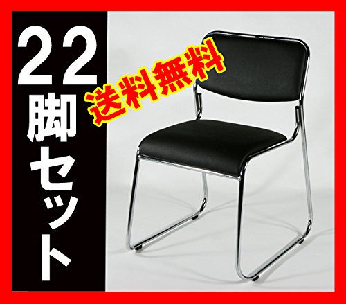 カゴ台車付き(ブルー Aタイプ) 22脚セット ミーティングチェア 会議イス 会議椅子 スタッキングチェア パイプチェア パイプイス パイプ椅子 ブラック