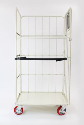 - 【カゴ台車】内寸…約89(幅)x約75.5(奥行)x約146(高さ)(cm)、底板…約86.5(幅)x約75.5(奥行)(cm)、キャスター径(cm):15cm、耐荷重(底板):550kg、全体耐荷重:750kg、重量:約51.5 KG