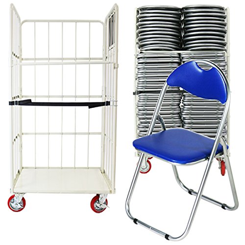 カゴ台車付き(ホワイト Aタイプ) 72脚セット パイプイス 折りたたみパイプ椅子 ミーティングチェア 会議イス 会議椅子 パイプチェア パイプ椅子 ブルー