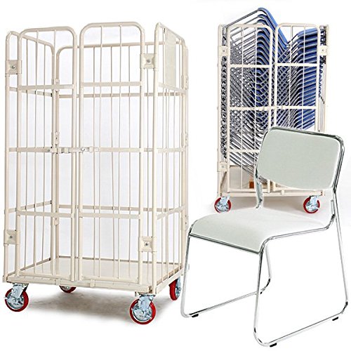観音扉カゴ台車(ホワイト Aタイプ) スタッキングチェア 22脚セット 会議イス 会議椅子 ミーティングチェア パイプチェア パ イプイス パイプ椅子 (ホワイト)