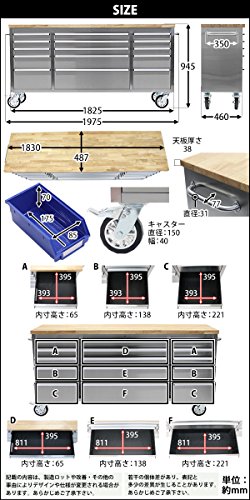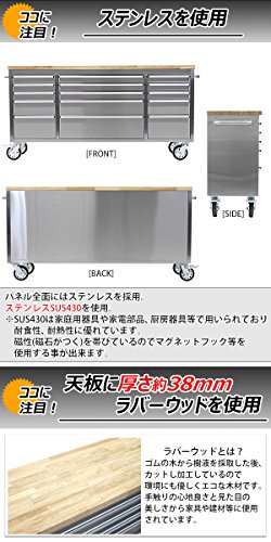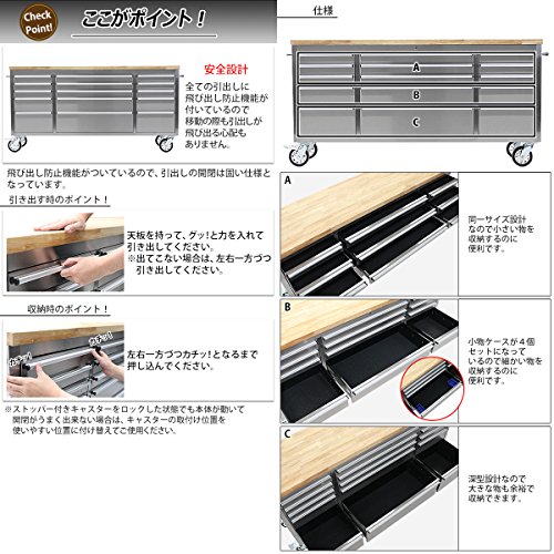 ステンレス ツールキャビネット 総積載荷重約700kg 約幅1975×奥行487×高さ945mm 鍵付き キャスター ツールチェスト ツールワゴン 工具 収納 調理台 家具 サイドテーブル 作業台 キッチン テーブル カウンター 厨房 ダイニング ガレージ toolchest7272inch