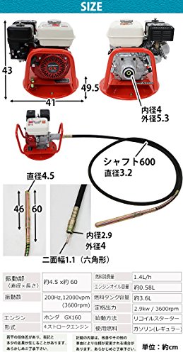 コンクリートバイブレーター Honda GX160付き エンジン ホンダ シャフト長さ約6m 高周波バイブレーター コンクリート振動機 フレキ 4ストロークエンジン コンクリート バイブレーター バイブレータ フレキ式 分断 錐振 打設 内部振動機 土木 建築 工事 vr4vp6m