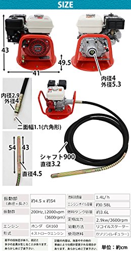 コンクリートバイブレーター Honda GX160付き エンジン ホンダ シャフト長さ約9m 高周波バイブレーター コンクリート振動機 フレキ 4ストロークエンジン コンクリート バイブレーター バイブレータ フレキ式 分断 錐振 打設 内部振動機 土木 建築 工事 vr4vp9m