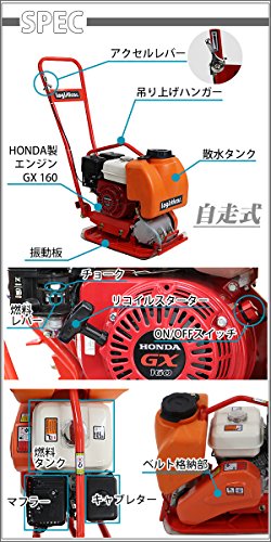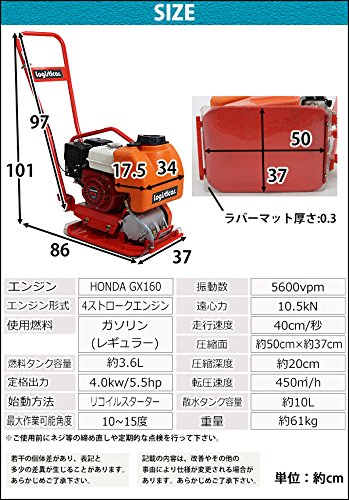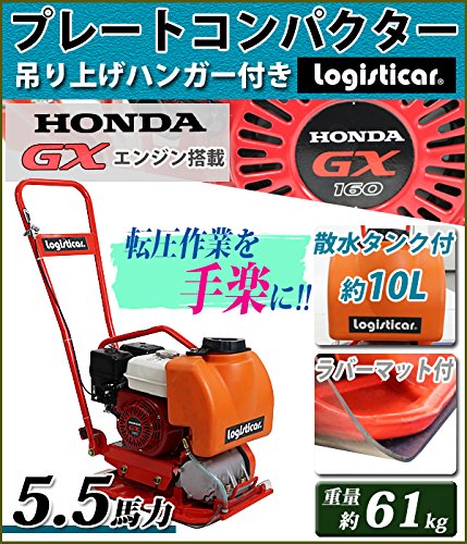 プレートコンパクター Honda GX160内蔵 4ストロークエンジン 5.5馬力 約61kg 散水タンク付き ラバーマット付き 転圧機 転圧機械 振動コンパクター プレートランマ― 転圧プレート ランマ― 工事現場 舗装工事 建設機械 振動 締め固め 機械 ホンダ platecompactorp10