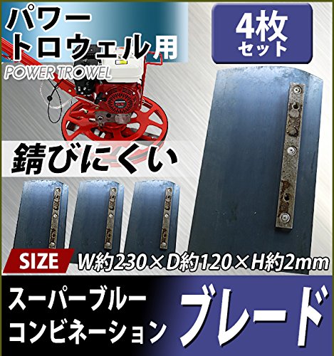 パワートロウェル用スーパーブルーコンビネーションブレード 4枚セット 約W230×約D120×約H2mm ネジ穴径約4.9mm 刃厚約2mm ブレード 羽根 トロウェル トロウェル用 均し 仕上げ フィニッシュ 共用 兼用 替え刃 替刃 交換 ptrowelsc09blade