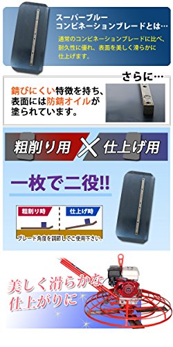 ●通常のコンビネーションブレードに比べ、耐久性に優れ、錆びにくく、コンクリート表面を美しく滑らかに仕上げます。
