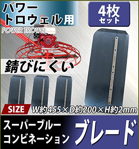 パワートロウェル用スーパーブルーコンビネーションブレード 4枚セット 約W455×約D200×約H2mm ネジ穴径約6.6mm 刃厚約2mm ブレード 羽根 トロウェル トロウェル用 均し 仕上げ フィニッシュ 共用 兼用 替え刃 替刃 交換 ptrowelsc18blade