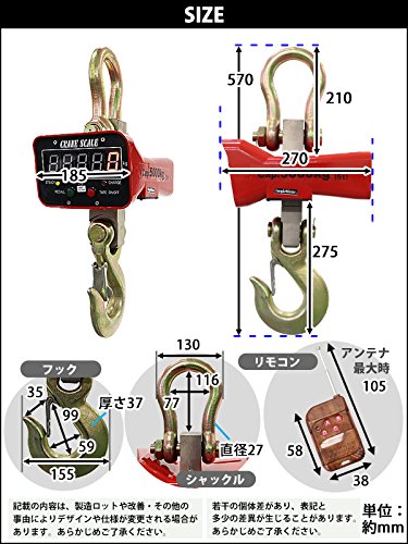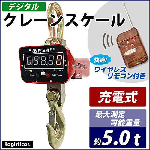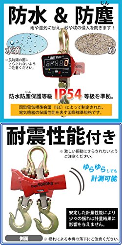 デジタルクレーンスケール 最大測定可能重量約5t リモコン付き 充電式 防水 防塵 精密 計量 無線 ワイヤレス 吊りはかり 吊り秤 吊秤 電子秤 吊り下げ クレーン フック 玉掛け 吊り上げ 重機 コンパクト 天秤 天びん はかり 5000kg 赤 レッド cscalecs5000red