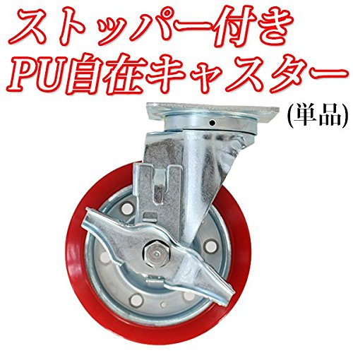 ストッパー付きPU自在キャスター 単品 1個 車輪径約15.2cm キャスター タイヤ 車輪 カゴ台車 かご台車 業務用台車 大型台車 オプション 台車用 自在キャスター casterstoppera