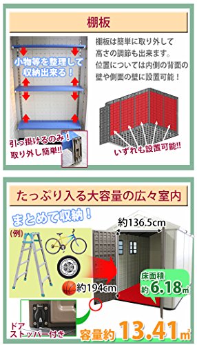 ●脚立、自転車、タイヤ等日用品の保管整理に最適です!たくさんのモノをまとめて保管出来る高い収納力もさることながら、お庭に置くだけでおしゃれな雰囲気を演出するデザイン性も大きな魅力です!