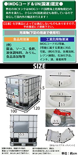 タンク IBCタンク パレット付き 1000L 荷重2253kg 薬剤タンク 貯水タンク 大型タンク タンク 輸送容器 IBC容器 コンテナ 物流保管用品 保管 運送 省スペース 段積み IMDG UN 液体 粉体 薬品 溶液 樹脂 業務用 四方型 IBCコンテナ IBC ibctank1