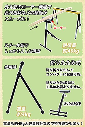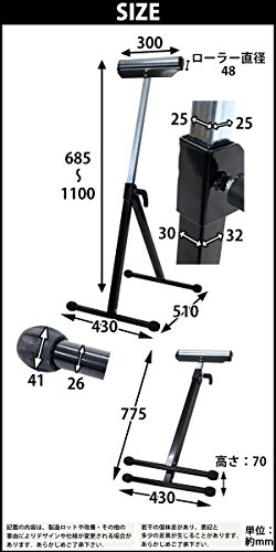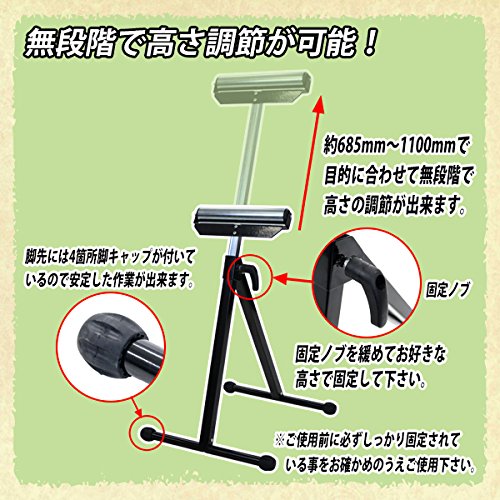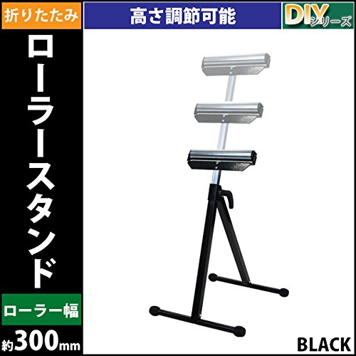 ローラースタンド 折りたたみ 高さ調節可能 黒 工作台 作業台 送材 ローラー幅約300mm 高さ約685mm~1100mm 耐荷重約40kg DIY 日曜大工 裁断 切断 安定台 木工作業 コンパクト 折り畳み ホビー ブラック rollerstandrs01bk