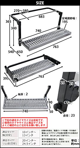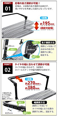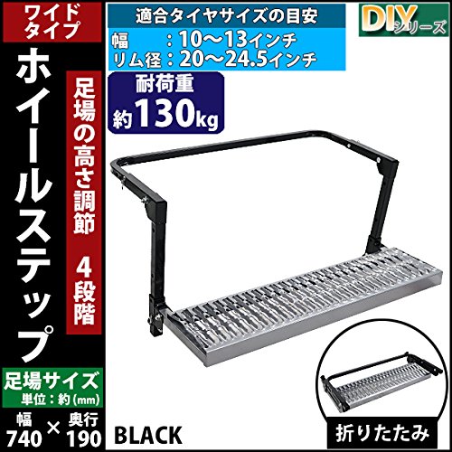 大型用 ホイールステップ ワイドタイプ 足場幅約740mm 奥行約190mm タイヤ目安20~24.5" 黒 耐荷重約130kg トラックステップ タイヤステップ スチール製 足場 ステップ 踏台 トラック 車 タイヤ 乗り降り DIY トラック用品 カー用品 ブラック trucktirestepos02bk