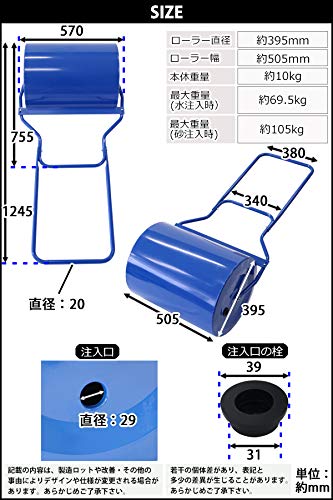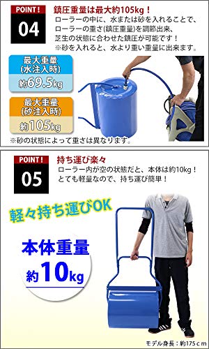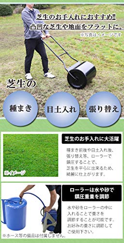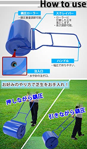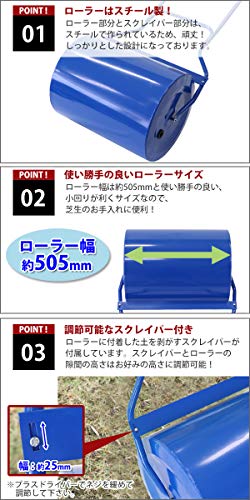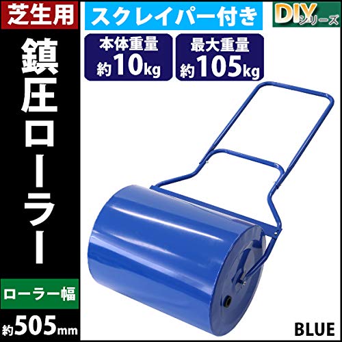ローラー 芝生用鎮圧ローラー スクレイパー付 重量調節 青 スチール ローラー幅約505mm 最大重量約105kg 転圧ローラー 芝生ローラー DIY 手押し けん引 ガーデンローラー 芝生 芝 庭 手入れ 整地 整備 鎮圧 ガーデニング 目土 種まき ブルー gardenroller03bl