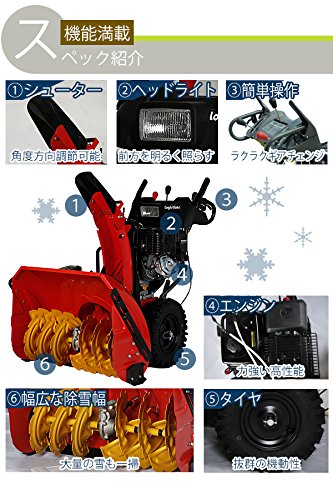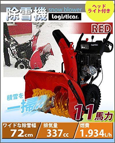 除雪機 自走式 セル付き ヘッドライト付き レッド 除雪幅約72cm 337cc 11馬力 11HP 4サイクル 雪かき機 雪かき 投雪 除雪作業 エンジン ガソリン 自走 家庭用 赤 RED josetu28ered