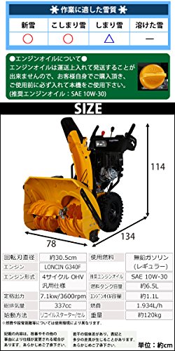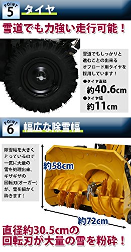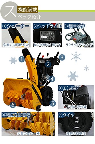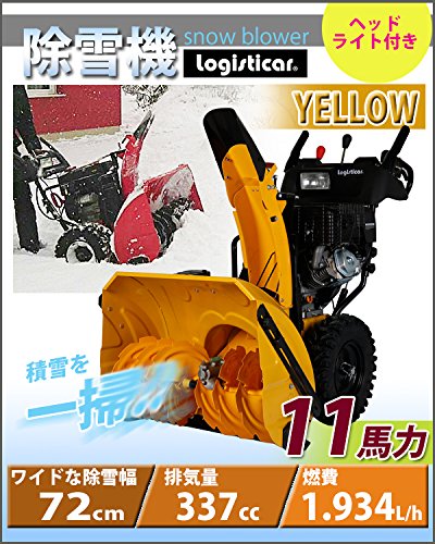 除雪機 自走式 セル付き ヘッドライト付き イエロー 除雪幅約72cm 337cc 11馬力 11HP 4サイクル 雪かき機 雪かき 投雪 除雪作業 エンジン ガソリン 自走 家庭用 黄 YELLOW josetu28eyel
