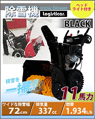 除雪機 自走式 セル付き ヘッドライト付き ブラック 除雪幅約72cm 337cc 11馬力 11HP 4サイクル 雪かき機 雪かき 投雪 除雪作業 エンジン ガソリン 自走 家庭用 黒 BLACK josetu28ebk
