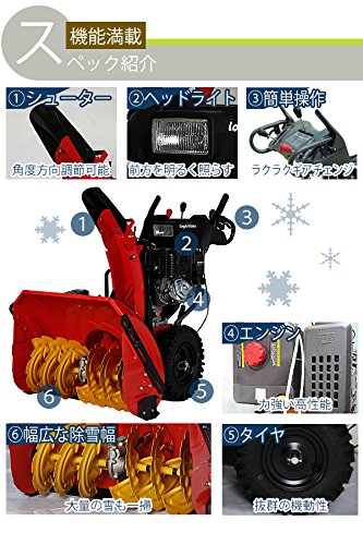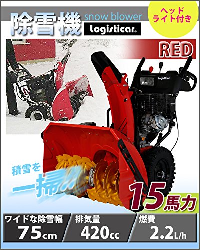除雪機 自走式 セル付き ヘッドライト付き レッド 除雪幅約75cm 420cc 15馬力 15HP 4サイクル 雪かき機 雪かき 投雪 除雪作業 エンジン ガソリン 自走 家庭用 赤 RED josetu30ered