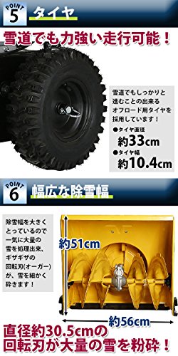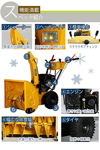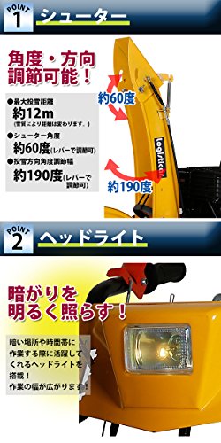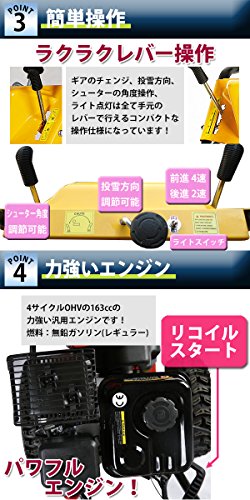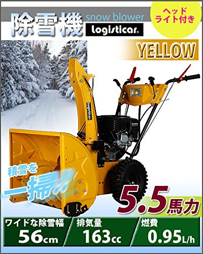 除雪機 自走式 リコイル ヘッドライト付き イエロー 除雪幅約56cm 163cc 5.5馬力 5.5HP 4サイクル 雪かき機 雪かき 投雪 除雪作業 エンジン ガソリン 自走 家庭用 黄 YELLOW josetu22yel