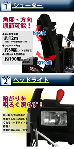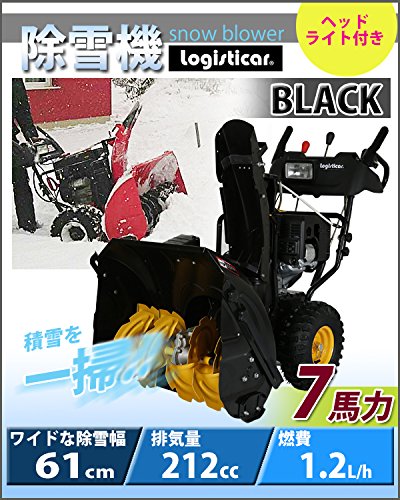 除雪機 自走式 セル付き ヘッドライト付き ブラック 除雪幅約61cm 212cc 7馬力 7HP 4サイクル 雪かき機 雪かき 投雪 除雪作業 エンジン ガソリン 自走 家庭用 黒 BLACK josetu24ebk