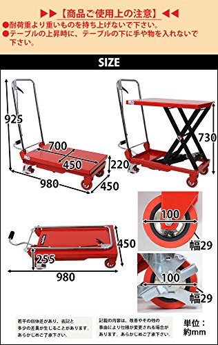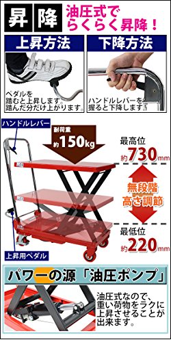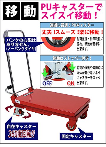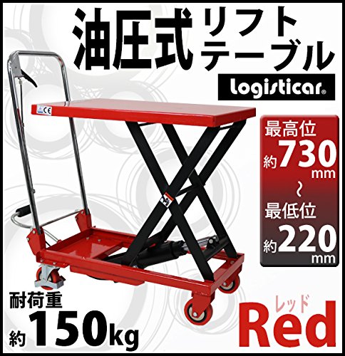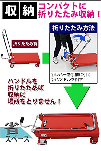 油圧式リフトテーブル 赤 折りたたみ 耐荷重約150kg キャスター付き ノーパンクタイヤ 台車 昇降台 油圧リフト 油圧台車 テーブルリフト テーブルリフター リフティングテーブル ハンドテーブルリフター 油圧式昇降台車 運搬台車 レッド lifttablesy15red