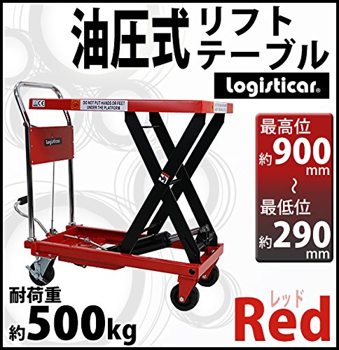 油圧式リフトテーブル 赤 耐荷重約500kg キャスター付き ノーパンクタイヤ 台車 昇降台 油圧リフト 油圧台車 テーブルリフト テーブルリフター リフティングテーブル ハンドテーブルリフター 油圧式昇降台車 運搬台車 レッド lifttablesy50red