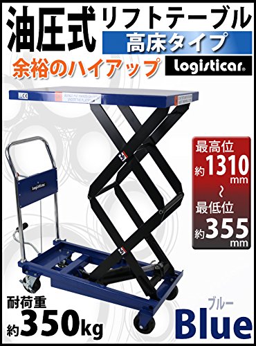 油圧式リフトテーブル 高床タイプ 青 最高位約1310mm 耐荷重約350kg キャスター付き 台車 油圧リフト 昇降台車 テーブルリフト テーブルリフター リフティングテーブル ハンドテーブルリフター 油圧式昇降台車 二段式 高揚程 ハイアップ ブルー lifttablesy35sblue