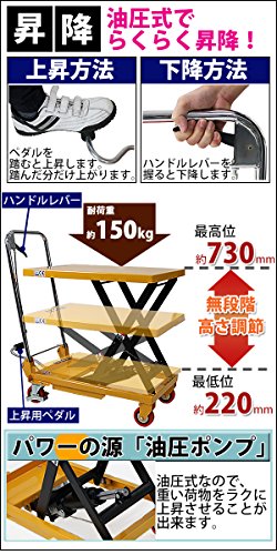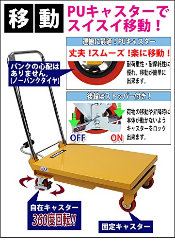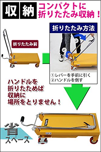 油圧式昇降台車 リフトカート テーブルカート ハンドリフター 黄 折りたたみ 耐荷重約150kg キャスター付き ノーパンクタイヤ 昇降台 油圧リフト 油圧台車 テーブルリフト リフティングテーブル 運搬台車 油圧 台車 イエロー liftdaishasy15y