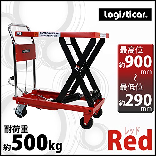 油圧式昇降台車 リフトカート テーブルカート ハンドリフター 赤 耐荷重約500kg キャスター付き ノーパンクタイヤ 昇降台 油圧リフト 油圧台車 テーブルリフト リフティングテーブル 運搬台車 油圧 台車 レッド liftdaishasy50r
