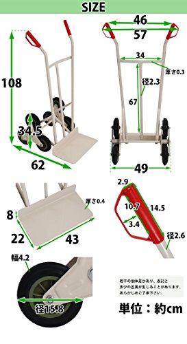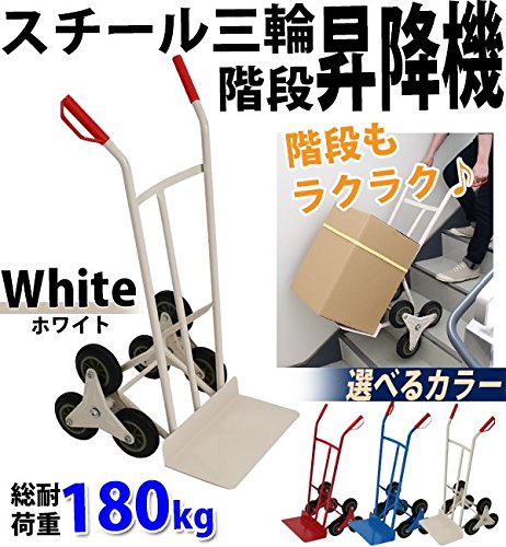 スチール三輪階段昇降機 白 耐荷重180kg 段差 22cm 220mm スチール製 階段 三輪 3輪 台車 キャリー カート 運搬 物流 ツールカート 段差解消 階段昇降 運搬台車 運搬機 荷物 業務用 タイヤ PU ホワイト daishah10white