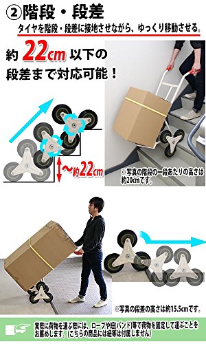 ●左右3輪ずつのタイヤのうち一つが常に接地している為、段差や階段の上り下りが安定して行えます!高さ約22cm以下の段差に対応可能。