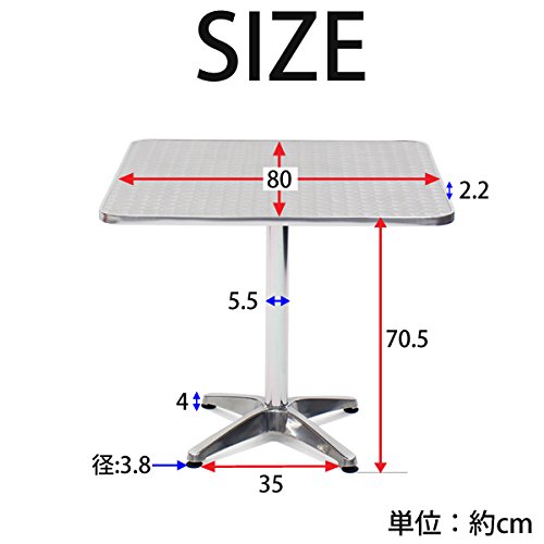 - 材質:アルミ(支柱・脚部)・ステンレス(天板)