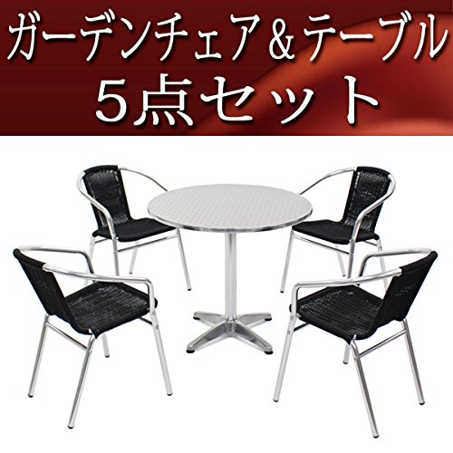 ガーデン5点セット ガーデンテーブル5点セット ガーデンテーブルセット 人工ラタン アルミチェア ダイニングチェア リゾートチェア ロビーチェア ガーデンチェア スタッキングチェア ビーチチェア スタッキング アウトドア リゾート ラタン (人工) ブラック L24BK L61 W80