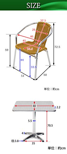 - 材質(チェア):アルミ(フレーム)、人工ラタン(ポリエチレン)