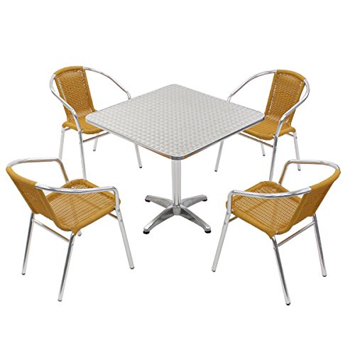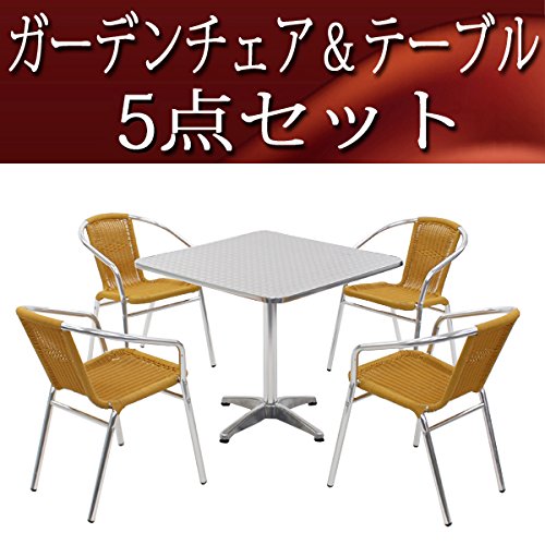 ガーデン5点セット ガーデンテーブル5点セット ガーデンテーブルセット 人工ラタン アルミチェア ダイニングチェア リゾートチェア ロビーチェア ガーデンチェア スタッキングチェア ビーチチェア スタッキング アウトドア ラタン (人工) ベージュ L24BE L63 W80スクエア