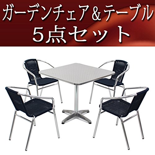 ガーデン5点セット ガーデンテーブル5点セット ガーデンテーブルセット 人工ラタン アルミチェア リゾートチェア ロビーチェア ガーデンチェア スタッキングチェア ビーチチェア スタッキング アウトドア リゾート ラタン(人工) ダークブルー L24DABL L63 W80スクエア