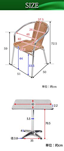 - 材質(チェア):アルミ(フレーム)、人工ラタン(ポリエチレン)